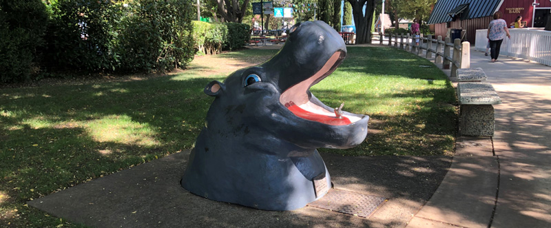 The Hippo Drinking fountain was created and placed near Farmer Brown’s Barn.