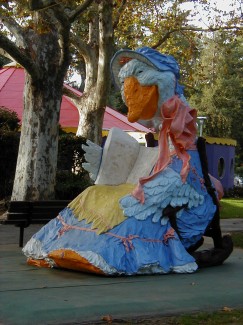 From a distance, she appears to be a statue of this beloved nursery rhyme character, but closer examination reveals an innovative slide built into her voluminous apron.