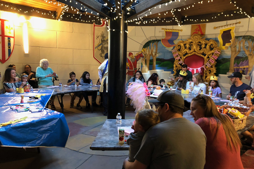- Birthday child’s name listed on the marquee in front of King Arthur’s Castle