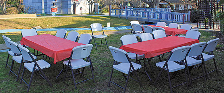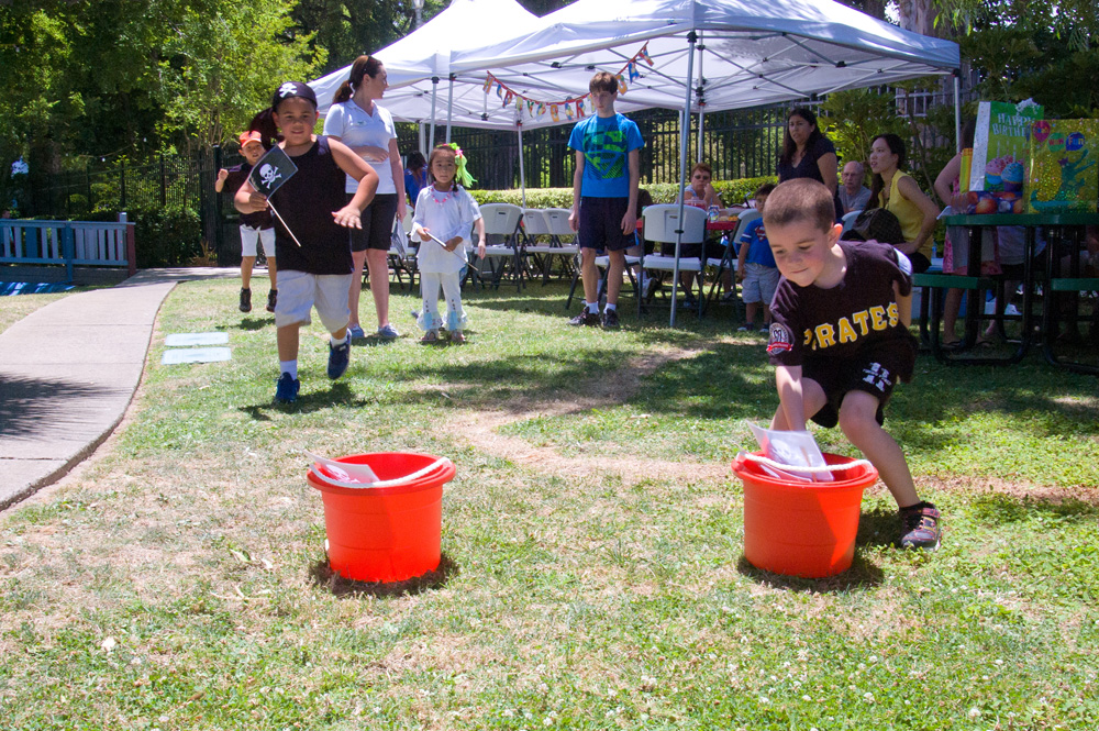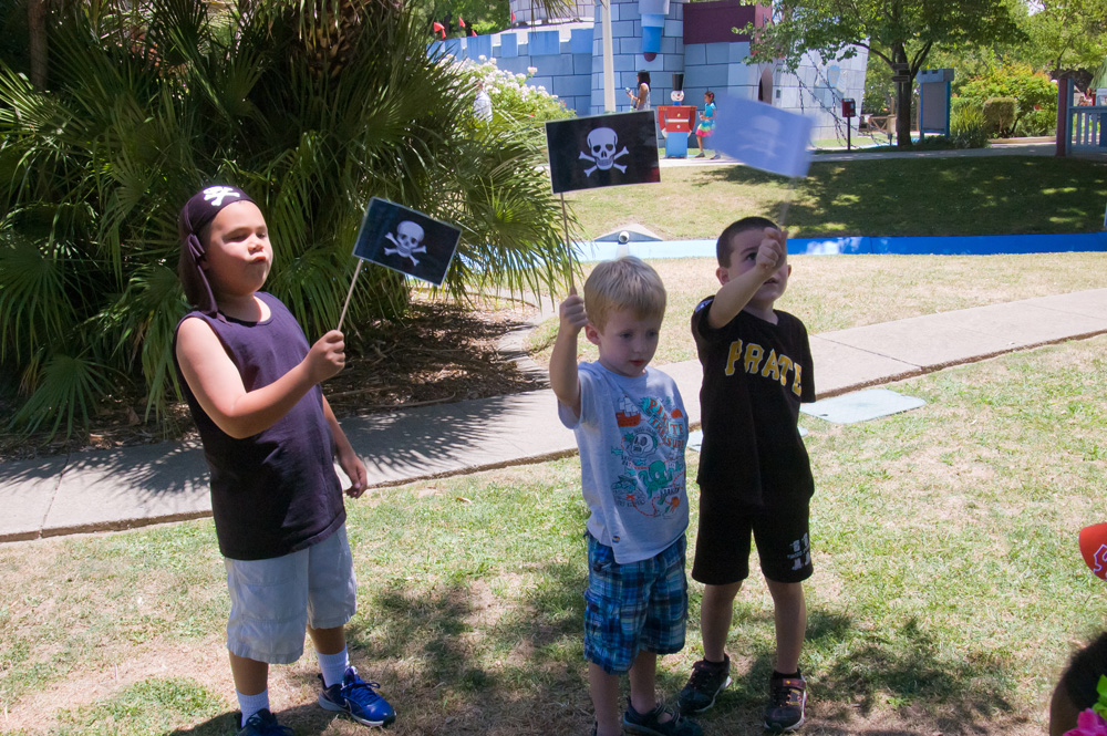 Ahoy, matey! Welcome aboard to celebrate a very special birthday for your little one! Avast, this party package includes a 90-minute celebration in Pirates Cove for up to 20 guests (adults and children). One matey party host guides the festivities by leading two activities of your choice and helping with setup, and cleanup. Paper plates, napkins, utensils, and a birthday banner are provided. Pirates Cove include two adult picnic tables, three small kids picnic tables and one 6 ft. stand alone table.