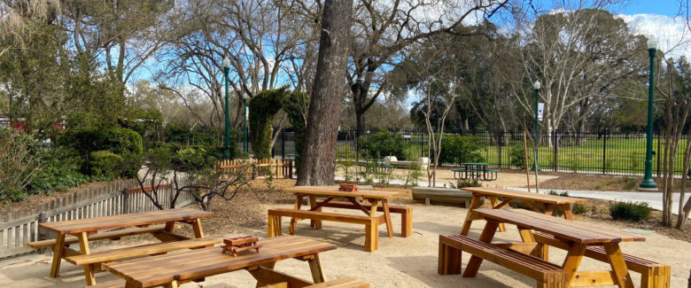 Create your own festive celebration in the Enchanted Garden with room for up to 30 guests! A party assistant helps with setup and cleanup and leads two activities of your choosing. Paper plates, napkins, utensils, and a birthday banner are provided. Enchanted Garden includes 4 wooden picnic tables and 1 stand-alone table. This area is located next to our Story Center with plenty of room for friends, food, and gifts.
