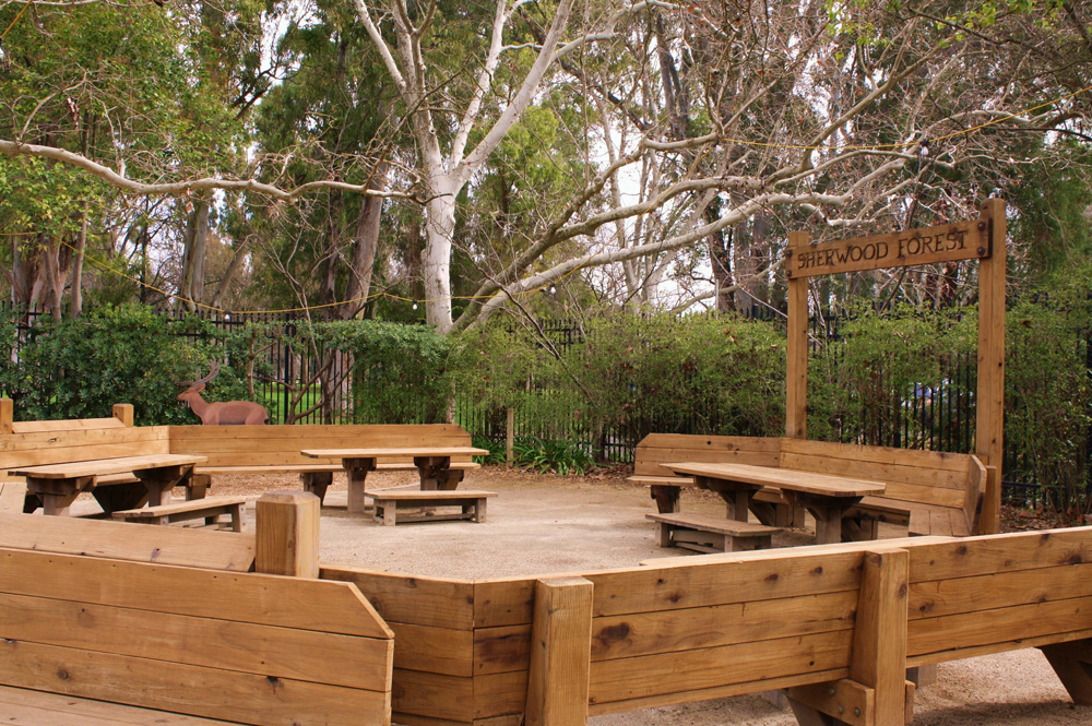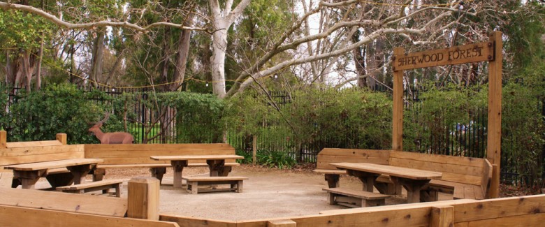 Create your own festive celebration in Robin Hood’s Hideaway with room for up to 40 guests! You can bring in your own food, cake and paper products. Sherwood Forest includes a large, fixed-seating area shaded by trees and with plenty of room for friends, food and gifts. Your party is adjacent to Robin Hood’s Fort play structure which remains open to the public.