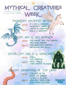 Join us for Story Time and guided crafts inspired by mythical creatures from January 22–25 at 11am! This activity is free with park admission, which can be purchased at the box office.
