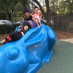 The Cheshire Cat occasionally makes an appearance directly above this slide into Wonderland.