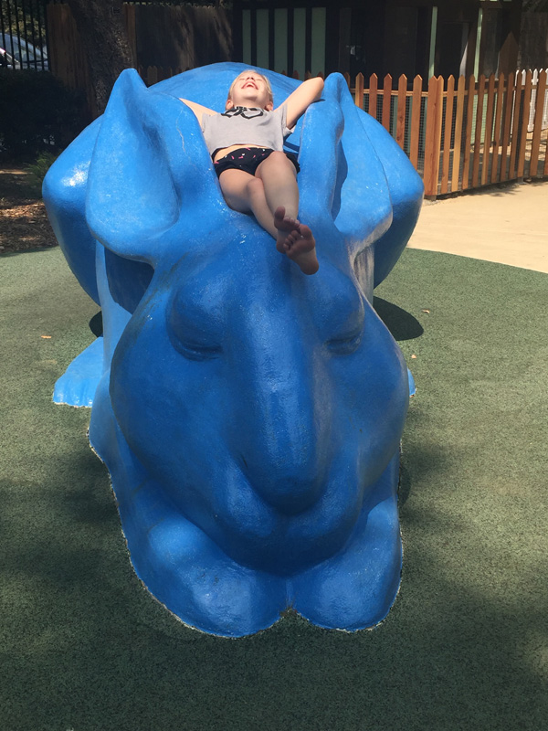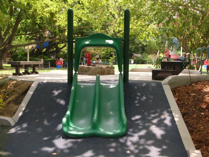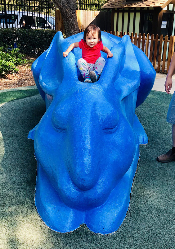 The Cheshire Cat occasionally makes an appearance directly above this slide into Wonderland.