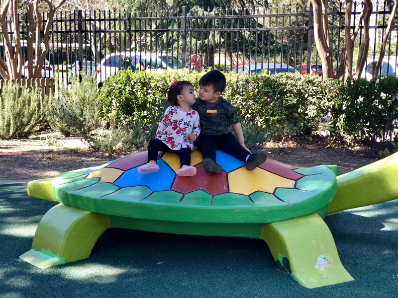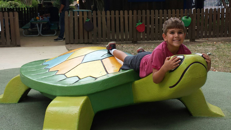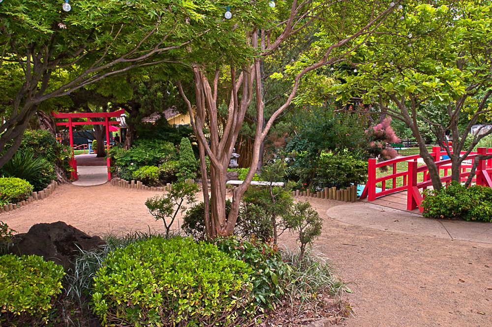 The Japanese Garden at Fairytale Town was first installed in 1961. The centerpiece of the garden is a statue of Urashima Taro – the Fisherman and the Turtle. This ancient tale features a noble young fisherman who is rewarded for rescuing a turtle by being taken to a fabulous undersea kingdom where he lives for many years in the company of a beautiful princess.