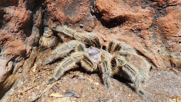 Charlotte is a character from E.B. White’s classic children’s book, Charlotte’s Web. She is a Chilean rose hair tarantula. Tarantulas have exoskeletons, meaning their skeletons are on the outside of their bodies, and have earned the nickname “Humpty Dumpty” spiders because if they fall from more than 3 feet high, these exoskeletons can break like an egg.