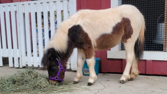 Ferdinand, the gentle ox from Munro Leaf’s children’s book of the same name, is a miniature Kentshire ox. This breed is unique for their small size and gentle nature. He resides in Farmer Brown’s Barn, next door to Dory, the miniature horse.