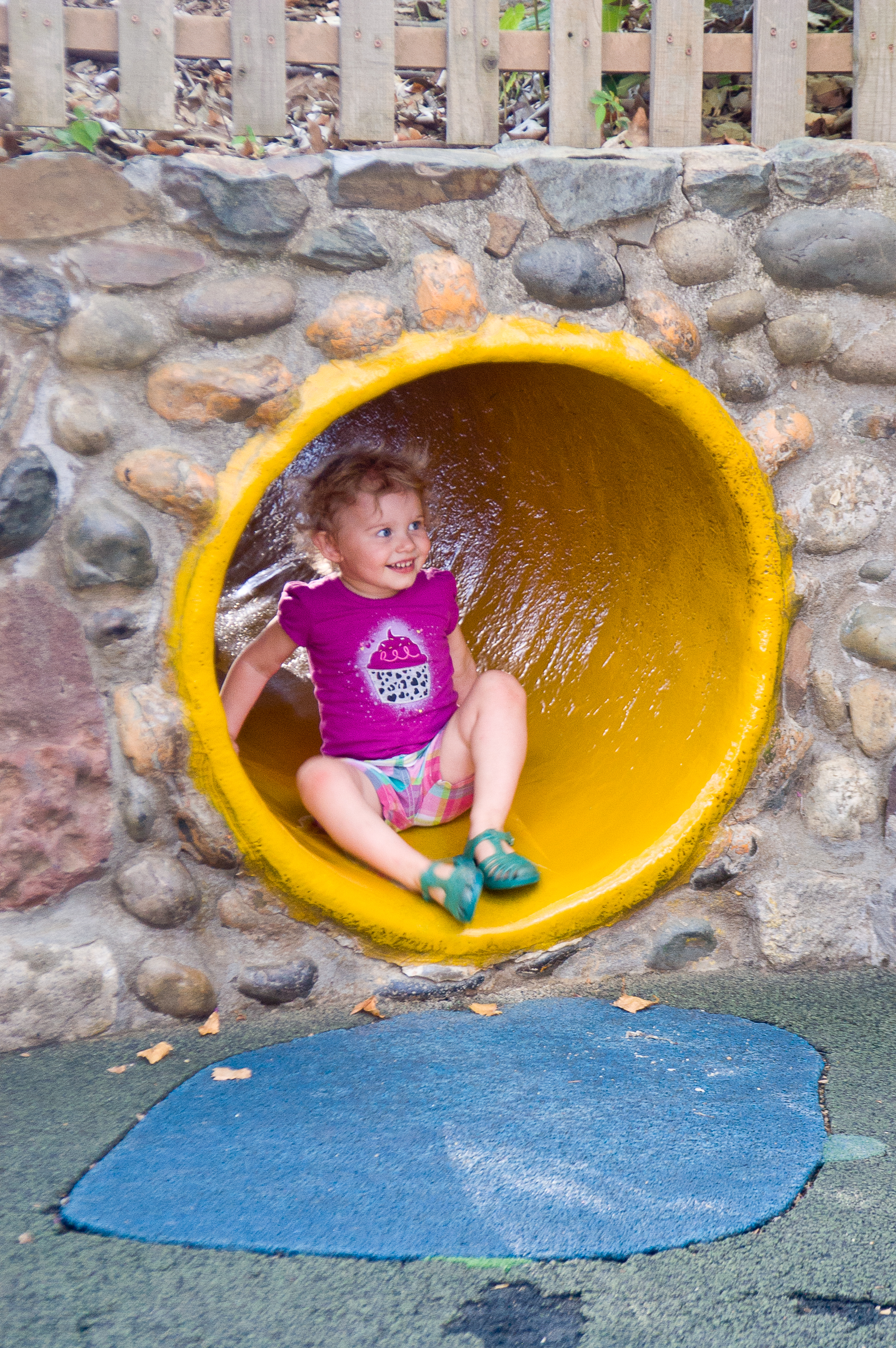 A trip to the top of this hill reveals a real working water well and a slide for tumbling after.