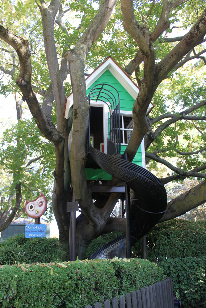 Climb to the top of the tree house, home to Pooh’s wisest friend, then take an exhilarating ride down the corkscrew slide.